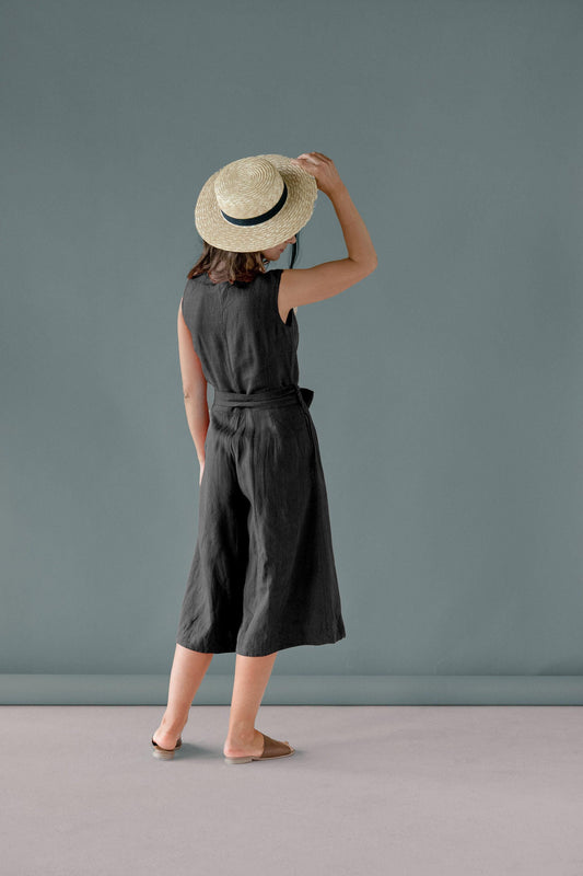 Linen Midi Shirt Dress With Puff Sleeves in Customizable Color
