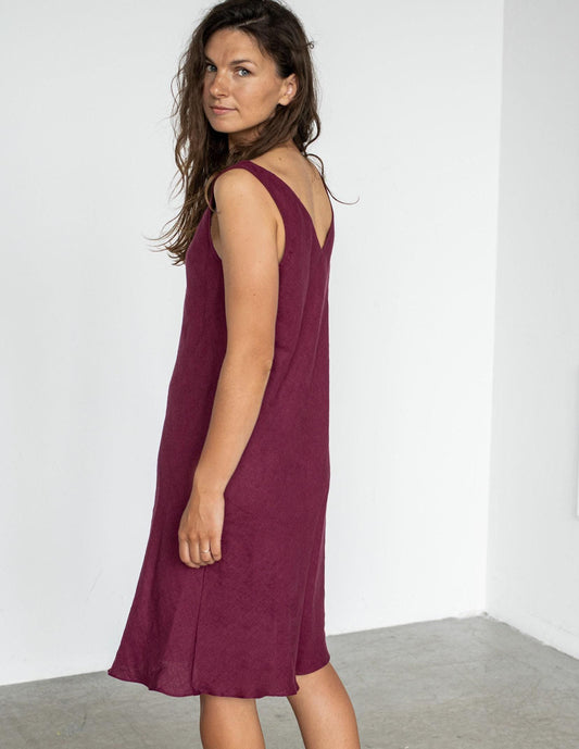 Personalizuojamos spalvos lininė midi marškinėlių suknelė pūstomis rankovėmis
