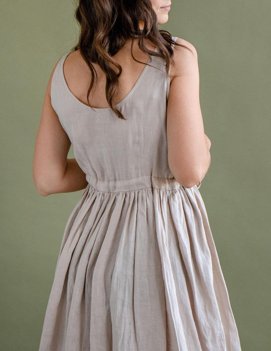 Lininė Safari suknelė žalsvai mėlynos spalvos