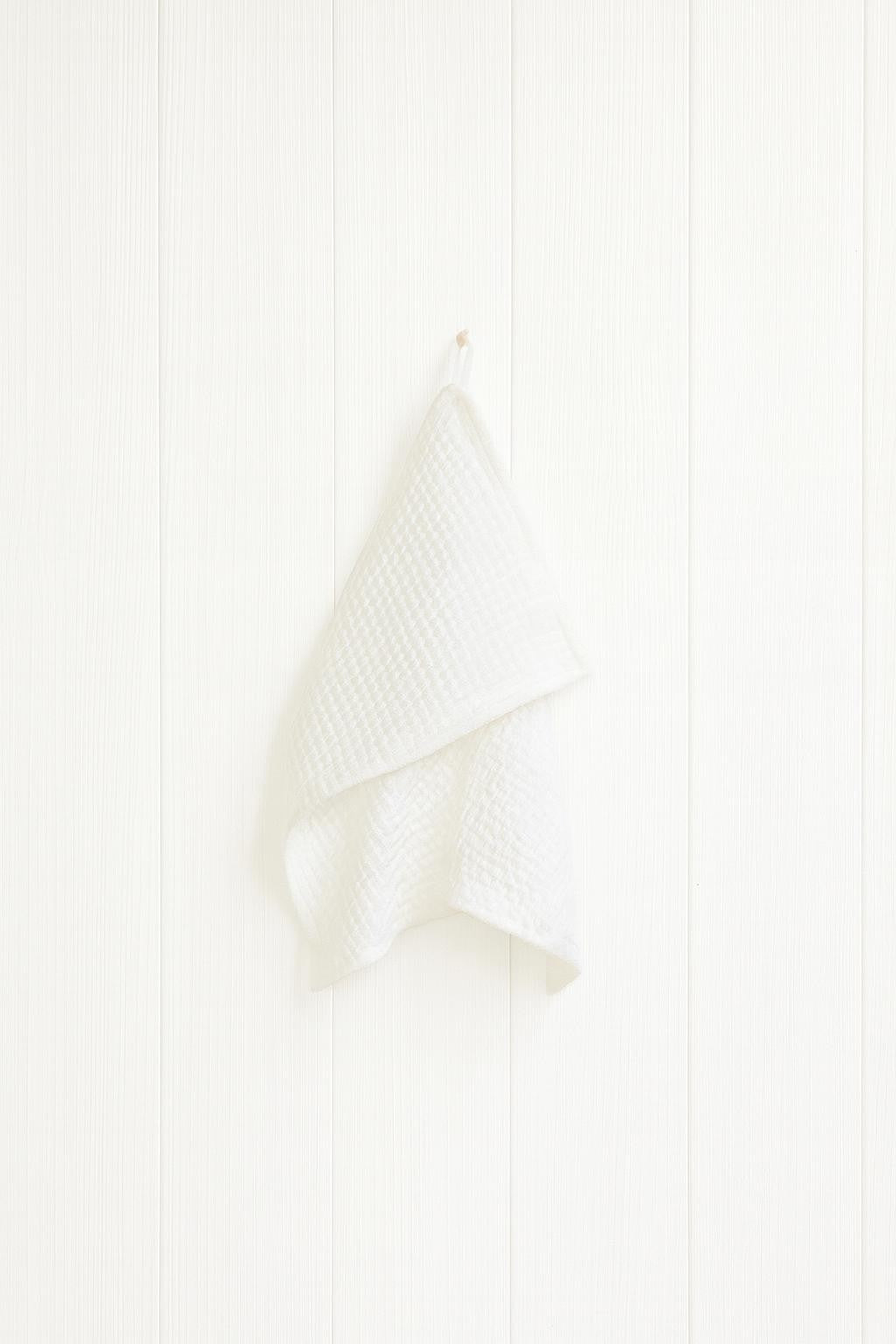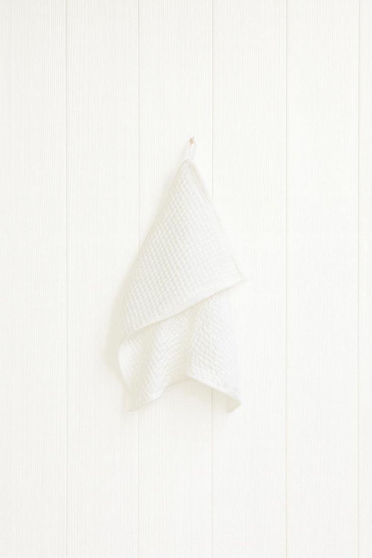 Lininis veido rankšluostis – Sniego balta, Solen Mara — mažas vaflinio lino rankšluostėlis, skirtas veido priežiūros rutinai. Naudokite kaip veido rankšluostėlį po valymo, kaip praustuvę duše ar kaip mažą rankšluostį svečiams.