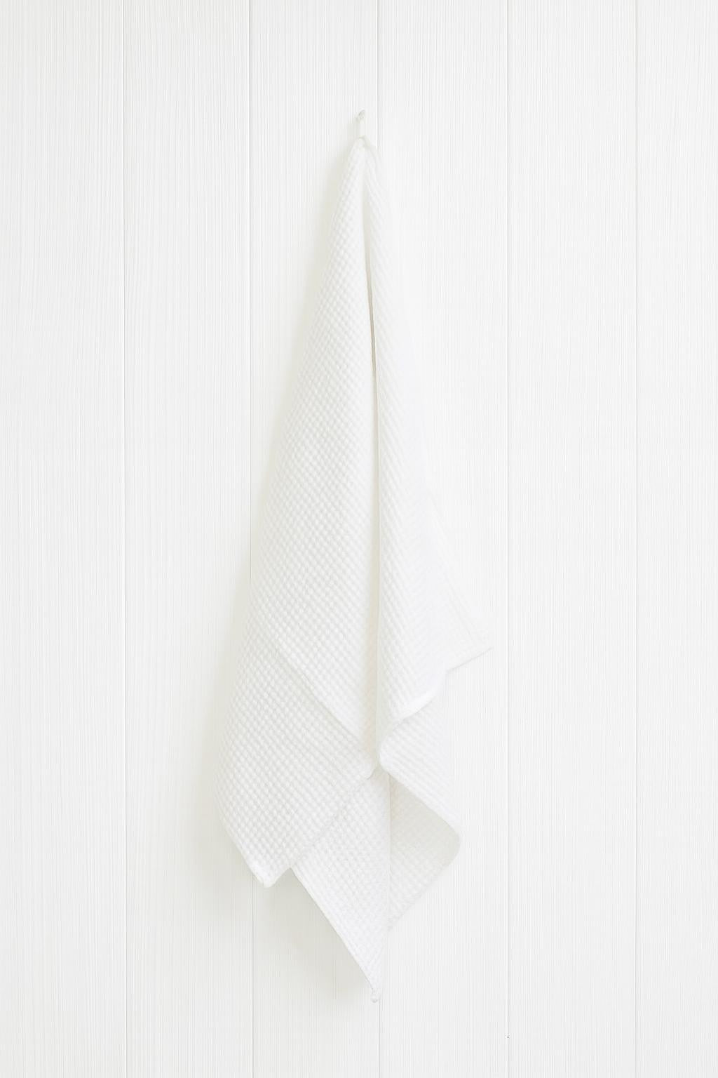 Kiekvienas rankšluostis pagamintas iš 53 % lino ir 47 % medvilnės mišinio vafliniu audimu — lengvas, labai gerai sugeria drėgmę ir greitai džiūsta. 210 gsm svoris suteikia tvirtą, kokybišką pojūtį be tradicinių medvilninių rankšluosčių svorio. Linas natūraliai atsparus kvapams ir bakterijoms.