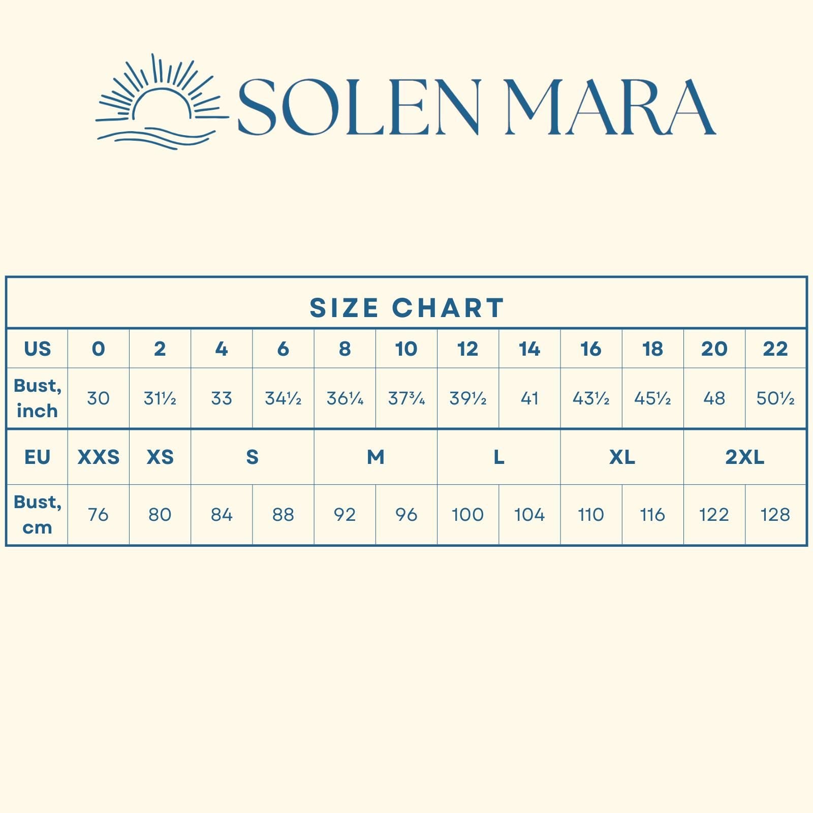 Jei nesate tikri dėl dydžio, susisiekite su mumis ir nurodykite savo išmatavimus bei norimas detales. Mūsų klientų aptarnavimo komanda padės per <24 valandas: info@solenmara.com